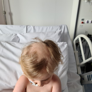 When we wake up on Wednesday, Louis has switched from his shady Ronaldo haircut to Tin Tin (which ironically was one of Daddy’s more polite nicknames at college – or at least the ones he was aware of). Louis feels rubbish with a temperature of 38 degrees and it looks like we might be back in isolation to protect other patients on the ward, who would also be vulnerable when it comes to infection. Louis sleeps most of the morning and no food or drink passes the lips for the third day in a row bar the small bit of yogurt he had yesterday. Louis is not even drinking water now as it’s too painful. He is getting all the fluids and nutrients he needs via drip – but it’s still frustrating that he doesn’t take in water at least. He has been drooling a lot this week and it turns out he has an inflamed throat and can’t swallow and therefore the morphine is increased and provided more frequently.